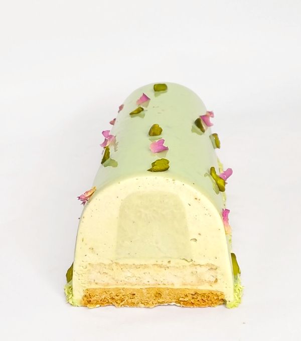 Les parfums d'Orient pour cette savoureuse bûche à la pistache et à la fleur d'oranger.